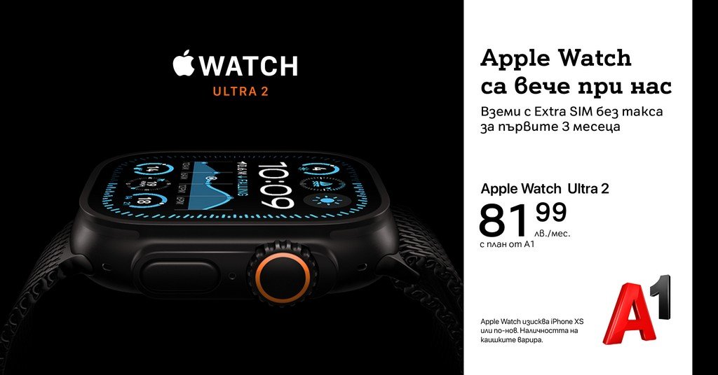 А1 разширява портфолиото си от смартустройства с добавянето на най-актуалните смартчасовници на Apple – Watch Ultra 2, Watch Series 10 и Watch SE. И трите модела поддържат eSIM, което позволява на потребителите да използват своя смартчасовник напълно самостоятелно – за обаждания, съобщения (без SMS и MMS) и достъп до интернет, дори когато iPhone-ът им не е наблизо. Тя се активира като Extra SIM към номера за мобилни гласови услуги с абонамент на клиента и се предлага както за най-новите модели, така и за всички останали, които поддържат функцията. За целта е необходимо и двете устройства да работят с най-новата версия на операционната система – iOS 18.4 за iPhone и watchOS 11.4 за Apple Watch.