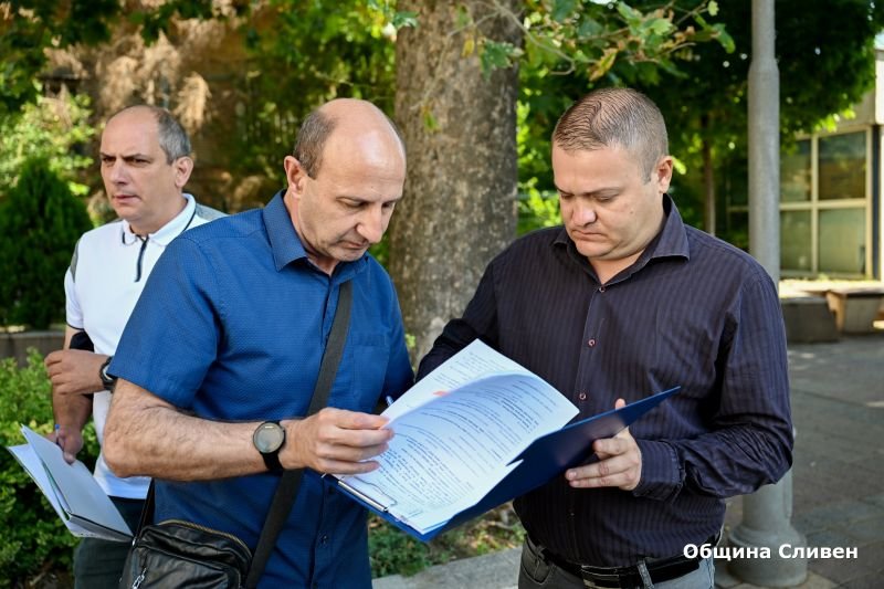 Той и Боян Боянов от фирмата-изпълнител "Осветление Сливен 2024", подписаха документацията за откриване на строителната площадка.