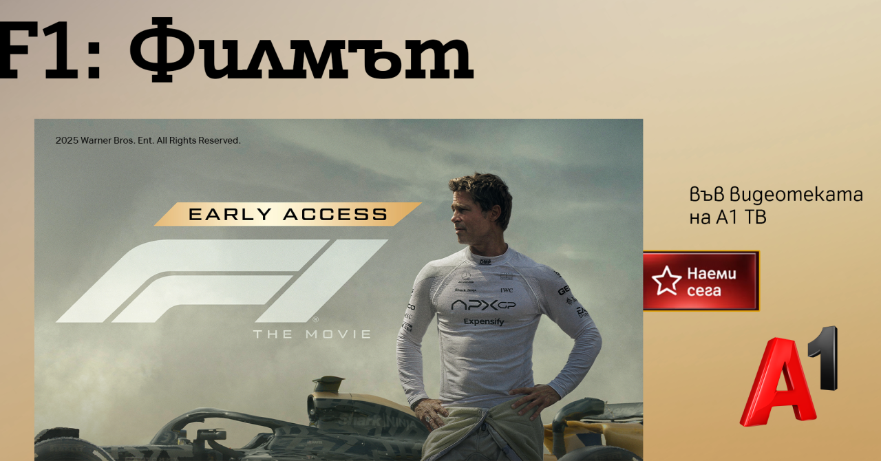 Два от най-обсъжданите филма на 2025 година – „F1: Филмът“ и „Супермен“ – вече са достъпни във видеотеката на А1 ТВ. И двете продукции впечатляват с модерен визуален стил, динамичен сюжет и силно екранно присъствие, превръщайки се в задължителни за любителите на голямото кино. Премиум заглавията могат да бъдат наети за 48 часа, като в този период се гледат неограничен брой пъти. „F1: Филмът“ е заснет с участието на реални отбори от Формула 1 и режисиран от Джоузеф Косински („Топ Гън: Маверик“). Брад Пит влиза в ролята на бивш състезател, който се завръща на пистата като наставник и отново – като конкурент. Лентата отвежда зрителите директно в сърцето на състезателния свят, предлагайки автентичен поглед към живота зад волана и напрежението преди всеки старт. Съчетанието от техническа прецизност, човешка драма и спиращи дъха състезателни сцени превръща филма в едно от най-завладяващите киноизживявания на годината. „F1: Филмът“ бързо се утвърждава като световен хит с автентична атмосфера и впечатляващи визуални ефекти.  Новата екранизация на „Супермен“, режисирана от Джеймс Гън, предлага свеж и съвременен прочит на легендарния герой. Фокусът е поставен върху човешката страна на свръхчовека, а визуалната концепция и дълбокият емоционален пласт допринасят за ново усещане за познатата история. В главните роли влизат Дейвид Коренсует (Супермен), Рейчъл Броснахън (Лоис Лейн) и Никълъс Холт (Лекс Лутор). С мащабна продукция и внимание към детайла, филмът съчетава зрелищен екшън с драматична плътност и получава високи оценки още с премиерата си. Видеотеката на А1 ТВ предлага разнообразие от български и чуждестранни заглавия във всички жанрове. Всеки месец се добавят нови предложения, които могат да се наемат за 48 часа и да се гледат неограничен брой пъти. Благодарение на вграден изкуствен интелект, платформата предлага персонализирани препоръки според вкуса на зрителя.