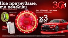 Именно в Моят А1 компанията кани своите клиенти да отпразнуват юбилея със специалното издание на „Колелото на съдбата“ в А1 клуб с 333 предметни награди и нови моментни бонуси. От 15 септември до 23 ноември всеки регистриран потребител на приложението и на уеб портала a1.bg може да завърти Колелото и да спечели – неограничени минути за национални разговори и неограничени мегабайти и скорост, валидни 24 часа от активацията, или роуминг пакет и 500 международни минути към ЕС, които могат да бъдат използвани в рамките на 30 дни. Колелото има три сектора, които дават възможност за участие в тегленето на предметни награди – 300 смартчасовника Huawei Watch FIT 4 Pro и 30 смартфона Samsung Galaxy S25 Edge. А в края на кампанията трима късметлии ще си тръгнат и с големите награди – автомобили BMW 318i.