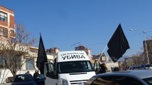 Към благоевградския протест се присъединиха и майки от София на деца с увреждания, на микробусът им бяха поставени черни знамена с мотото: „Системата ни убива”.