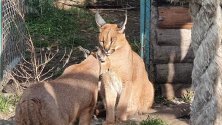 От днес Цезар и Клеопатра,единствената двойка каракали в България, са официално мъж и жена! На празника на любовта, екипът на зоопарк Бургас събра младата двойка каракали заедно за първи път.