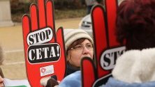 Противници на СЕТА на протест пред парламента