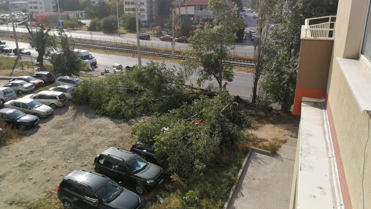 В София вятърът повали дървета и метални конструкции в центъра на града и в кварталите Младост, Люлин и Надежда.