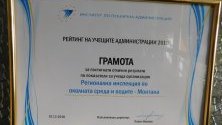 Директорът на РИОСВ – Монтана Деница Славкова получи грамота за постигнати отлични резултати по показатели за учеща администрация за 2018г.