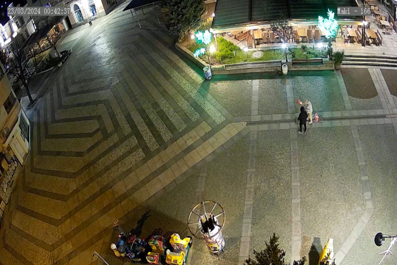 При друг случай от 22 март камерите са записали двама младежи с качулки, които взимат конуси, инвентар на Общината, служещи за временна сигнализация за пропаднали решетки по отводнителните канали пред заведение „Маки“. В последствие тези конуси са ги използвали за забавление до Общината. Там, със свои приятели, са ги прескачали с велосипеди и скейтбордове.