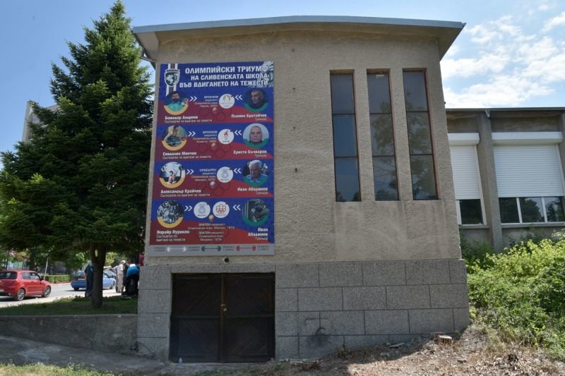 На западната стена на залата отвън е монтирано и пано със снимките на сливенските олимпийци в щангите и техните треньори: Норайр Нурикян с Иван Абаджиев, Александър Крайчев с Иван Абаджиев, Севдалин Минчев с Христо Бъчваров и Божидар Андреев с Пламен Братойчев.