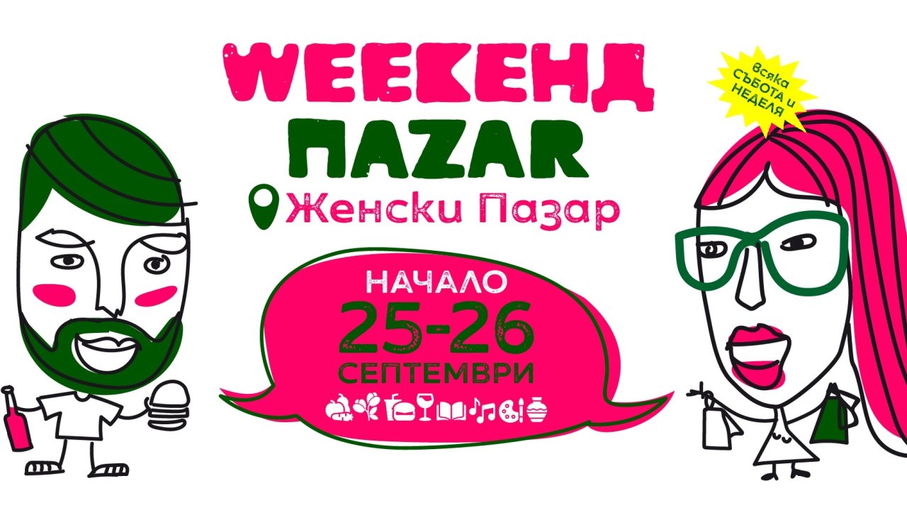 Първият WEEKEНД ПАZAR в София ще започне тази събота и неделя, 25 и 26 септември, на емблематичния за софиянци Женски пазар. Всеки уикенд, от 10:00 до 19:00 часа, столичани и гости на столицата ще могат да открият на едно място български продукти, ресторанти, напитки, книжен пазар, цветен пазар, музикална програма и съвременно българско изкуство, антики, дрехи и още много други изненади в приятна атмосфера.