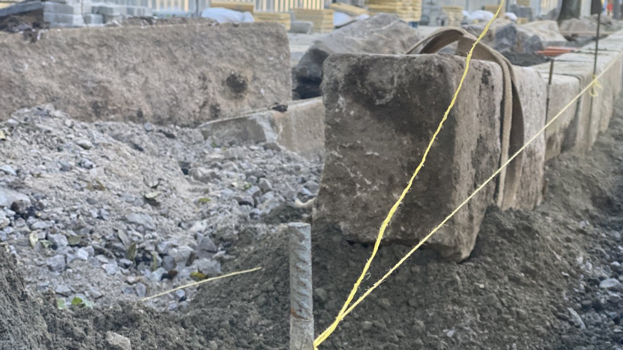 „В отсечката между ухо „Съдебна палата“ и пл. „Македония“ има над 2000 гранитни бордюра, които представляват архитектурно-строителна недвижима културна ценност с местно значение. При ремонта на трамвайното трасе, който протича в момента, ние се отнасяме с изключително внимание към всеки един от тях. Бордюрите се демонтират и монтират на ръка, но заради особено голямото им тегло, всеки се връзва с колани и се повдига с малък багер. Реденето отнема доста време, но това е единственият начин да запазим целостта и облика на тази част от града ни“, обясни зам.-кметът по строителството в СО инж. Ангел Джоргов.