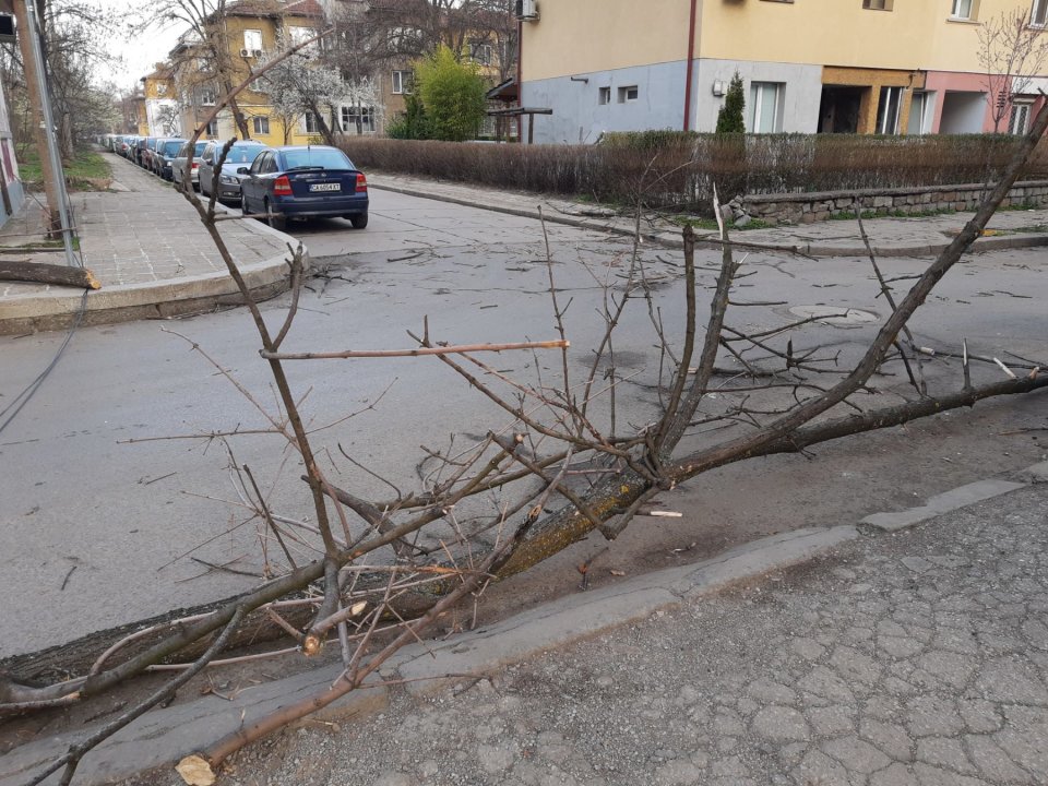 Столичани сигнализират, че вятърът е превърнал в сметища редица квартали. Бурният вятър е изпочупил клони и съборил цели дървета върху няколко автомобила. От снимки, споделени в социалните мрежи, се вижда как паднало дърво е затиснало ван в район „Красна поляна“. Очевидци твърдят, че за щастие при инцидента няма пострадали, предаде bTV.