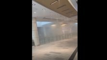 Пожарът е възникнал в частта със заведенията за хранене. На видеото се вижда задимяването и се чува сигналът за евакуация.